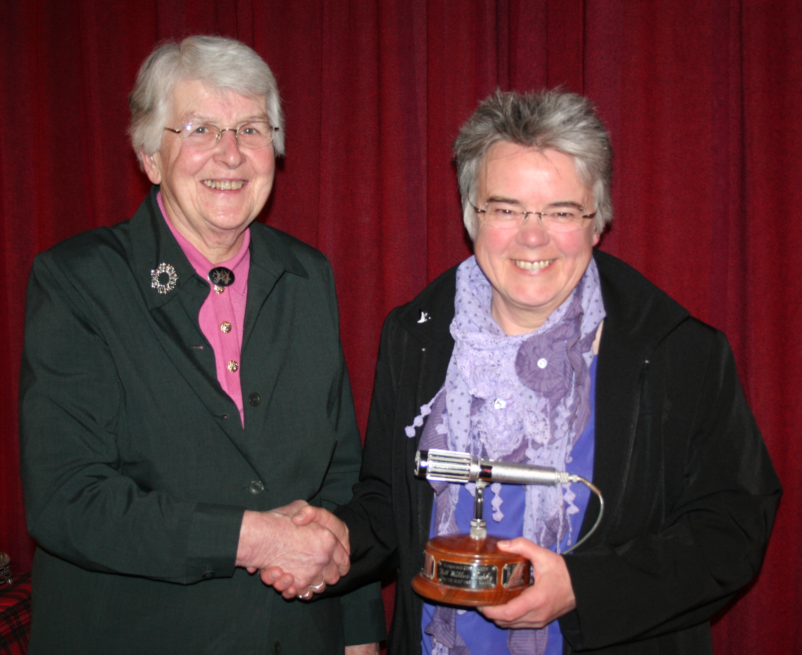 Margaret Trevor presents Pauline Johnson with the Bill Walker trophy for "RET"