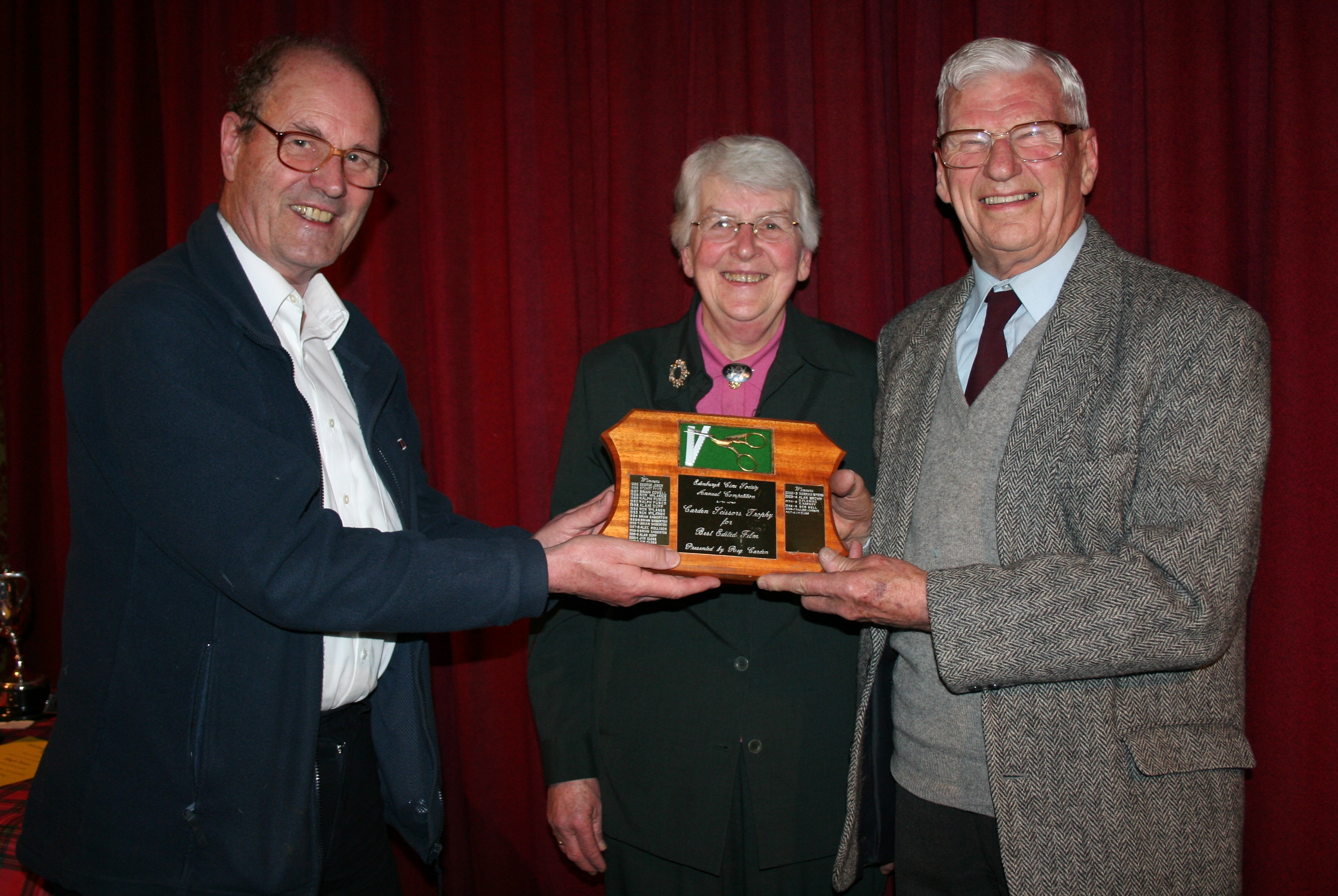 Jim Closs presents Hugh Trevor with the Reg Garden Scissors for "The Gannet Lady"