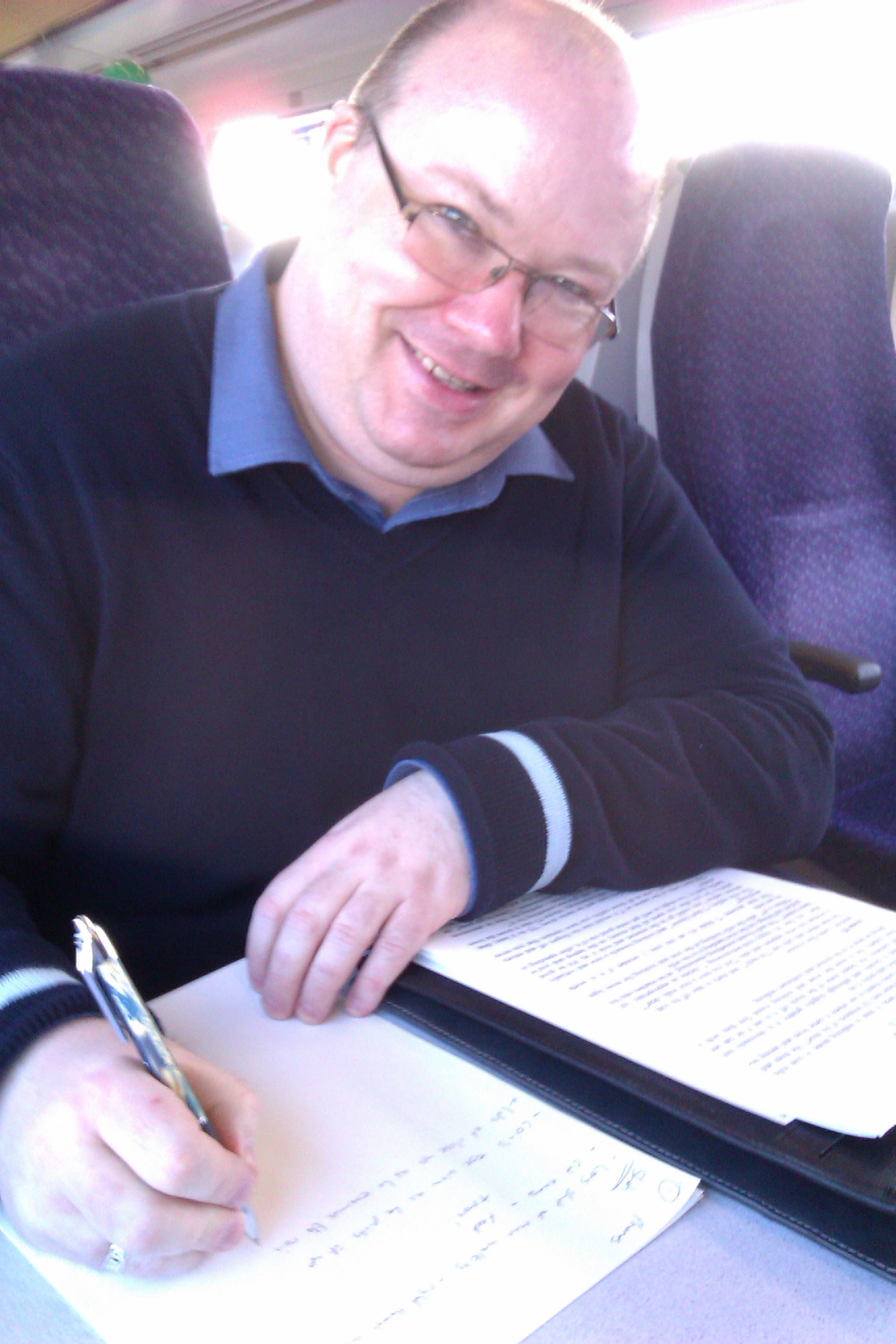 Sean Groat on the train heading to Stirling, adds finishing touches to the script