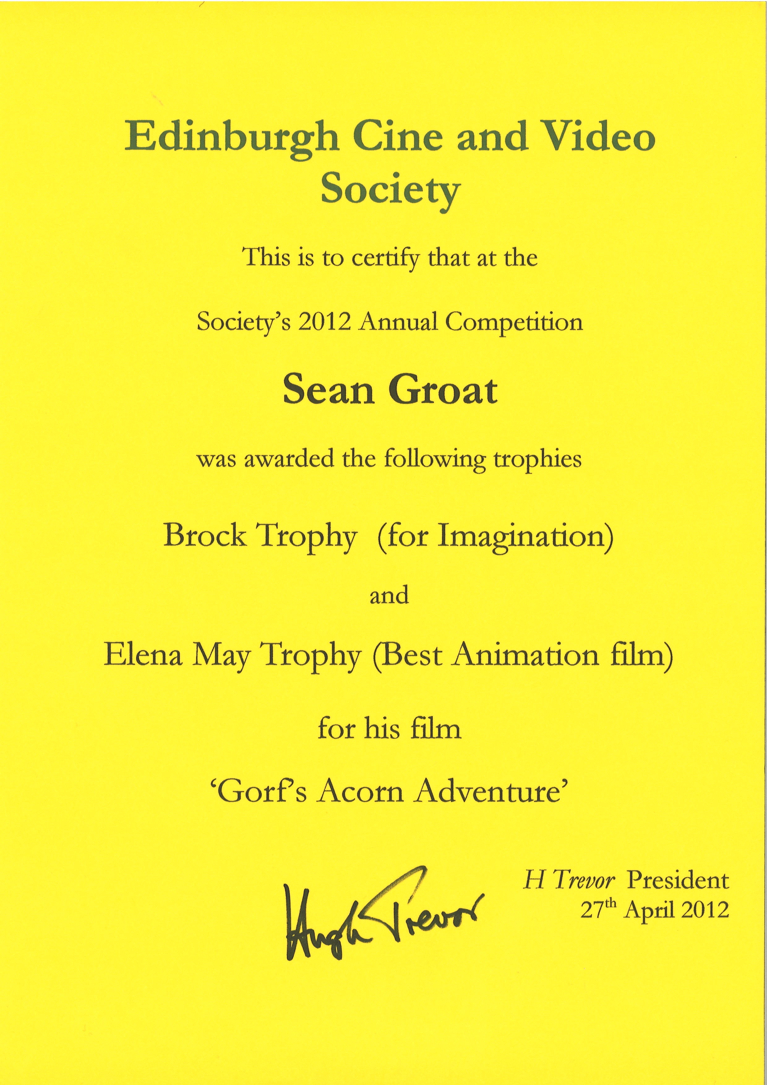 Award - Brock Trophy and Elena Mae Trophy