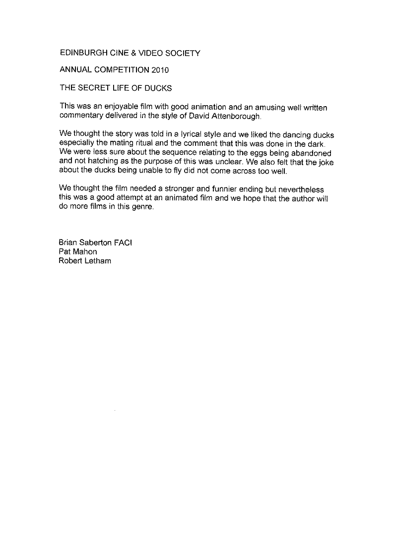 Crit - The Secret Life of Ducks - ECVS 2010 - Brian Saberton Pat Mahon Robert Latham