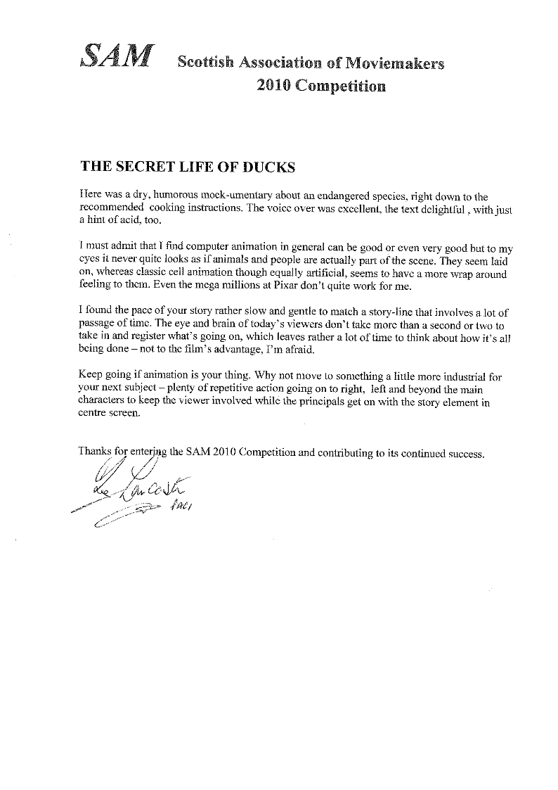 Crit - The Secret Life of Ducks - SAM 2010 - Reg Lancaster