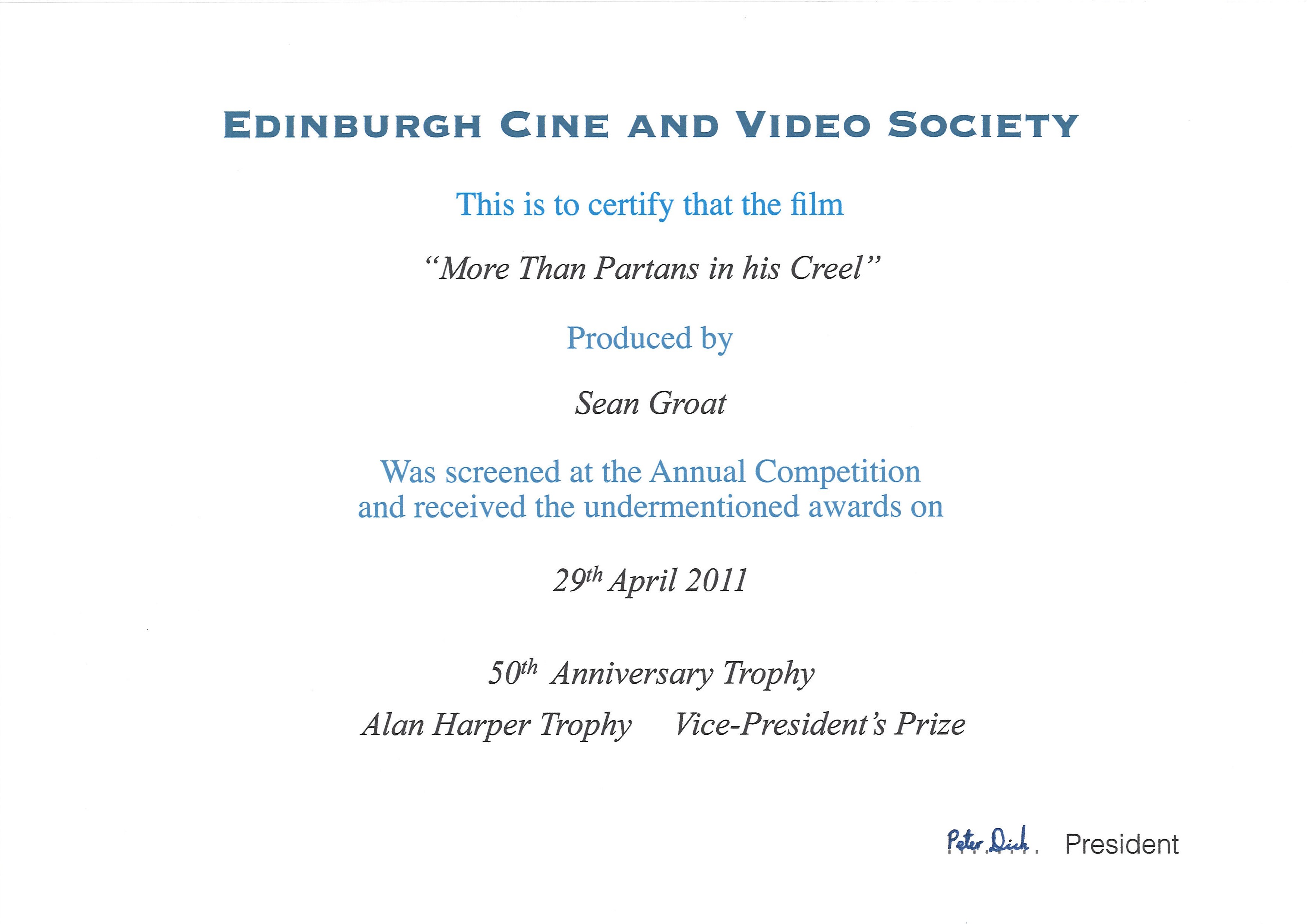 Award - Alan Harper Trophy and 50th Anniversary Trophy and Vice-President's Prize
