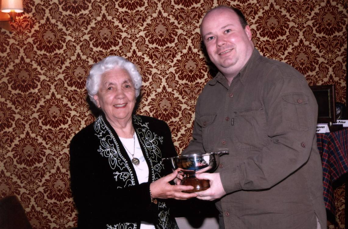Mrs Dorothy Speirs presents the Scotia Quaich to Sean Groat